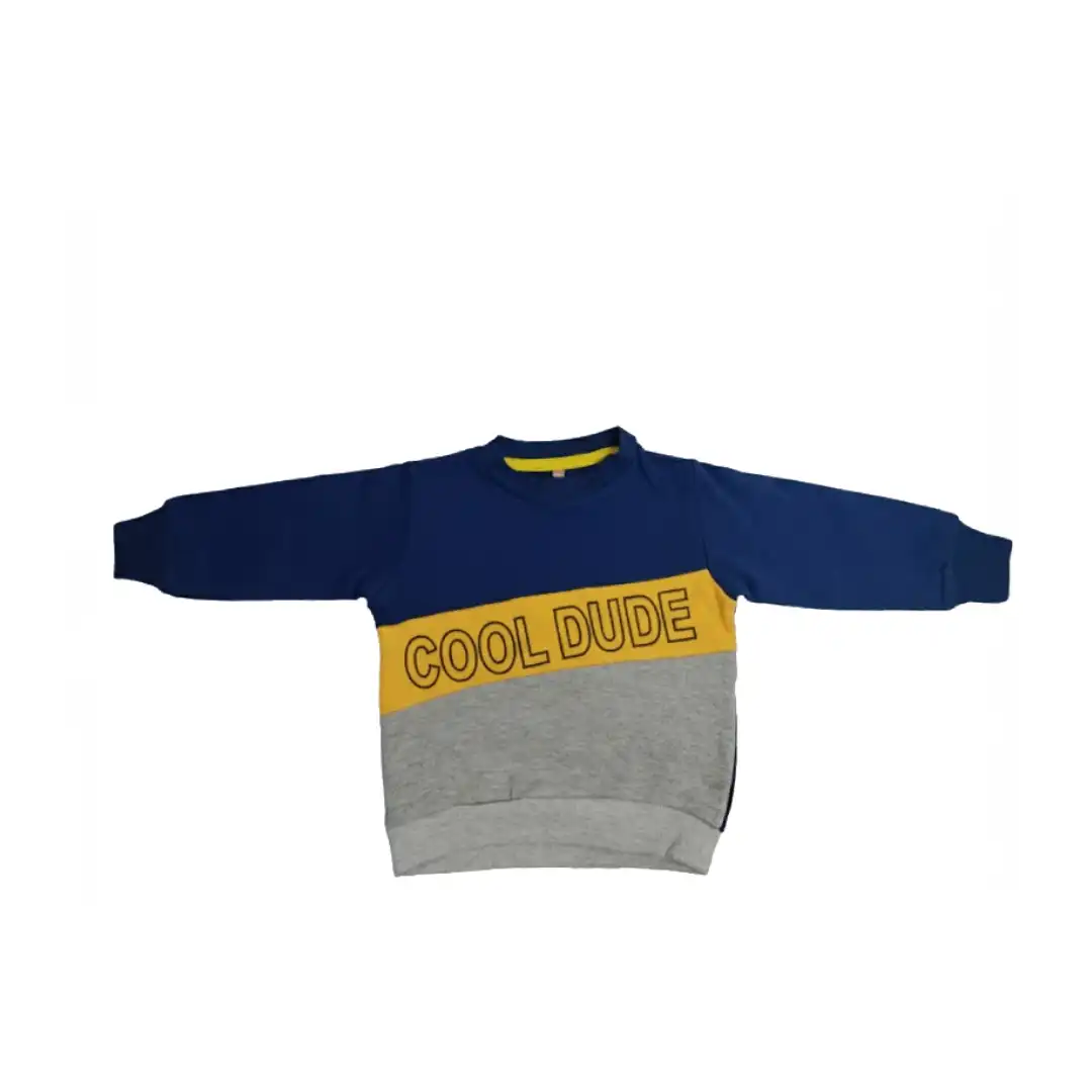 This edition of the “COOL DUDE” sweatshirt brings a timeless, sporty appeal with its navy blue and bright yellow accents. It’s an easy-to-wear, high-comfort piece designed to keep your child cozy and looking great.