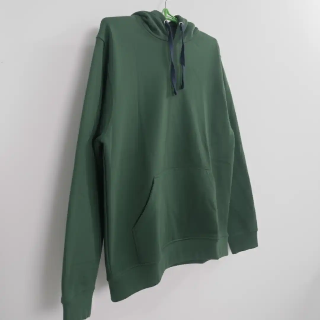 Refresh your casual collection with this deep Forest Green Pullover Hoodie. The rich, dark green color offers a sophisticated take on a wardrobe classic, complemented by the subtle detailing of the navy-blue contrast drawstrings. Made for comfort, this hoodie features a soft interior, a practical front pocket, and a generous hood. Its durable construction and vibrant color make it an excellent piece for outdoor activities, weekend adventures, or comfortable indoor lounging.