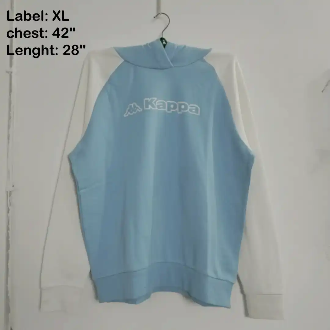 Show off vintage style with the Kappa Light Blue and White Color Block Hoodie. Features the iconic Kappa logo across the chest, bold raglan sleeves, and a cozy kangaroo pocket. Perfect for athleisure and streetwear.