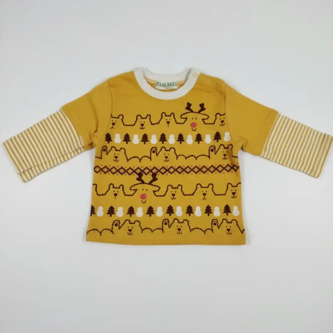 Bring some festive cheer and comfort to your toddler’s wardrobe with this delightful long-sleeve tee. Designed with a fun, repeating pattern of adorable characters, it’s a perfect top for the cooler months and seasonal celebrations.